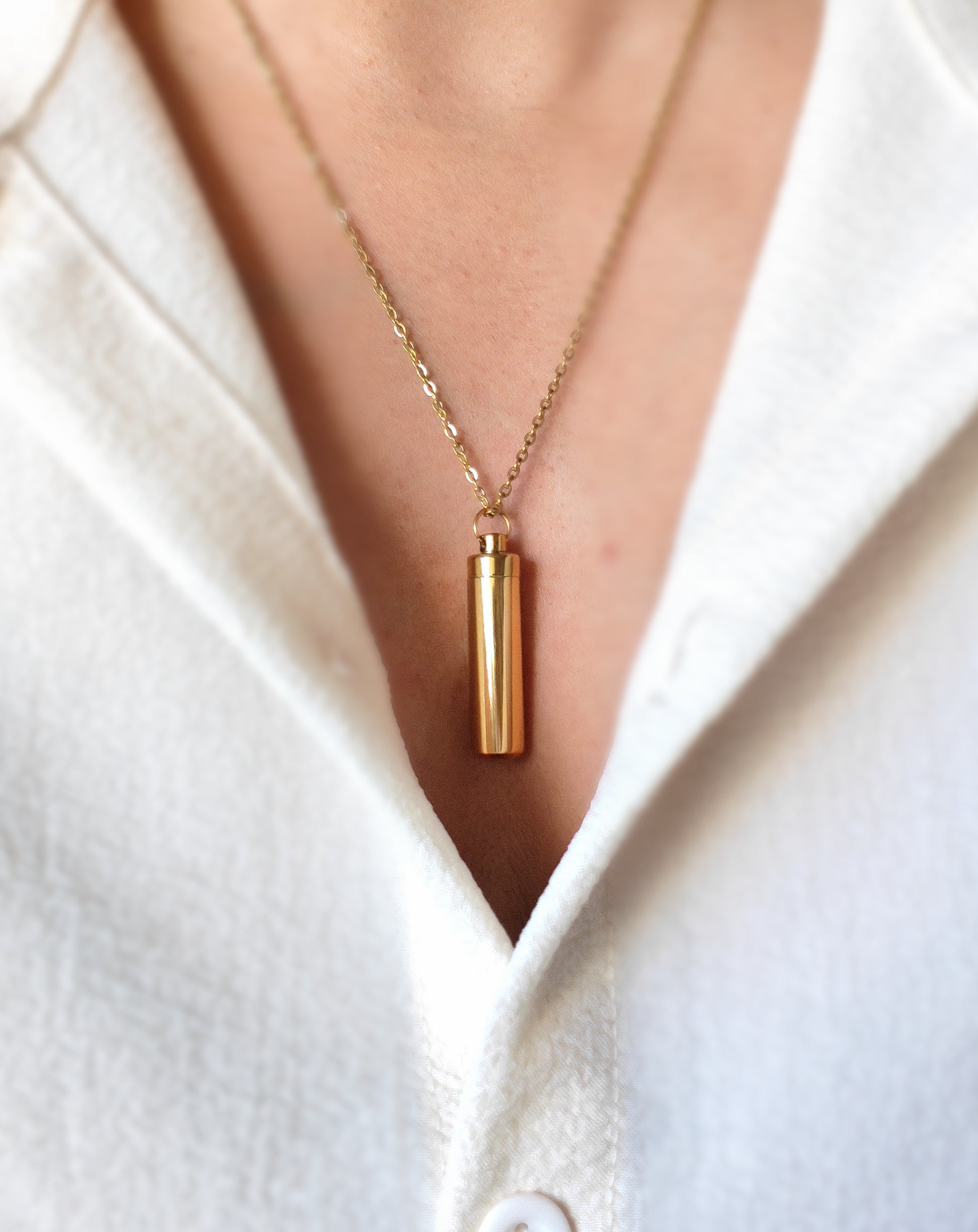 Su diseño tipo cápsula permite guardar en su interior un pequeño símbolo de ese amor que permanece: una pizca de cenizas, tierra de un lugar especial o cualquier recuerdo significativo que represente el vínculo que compartieron.