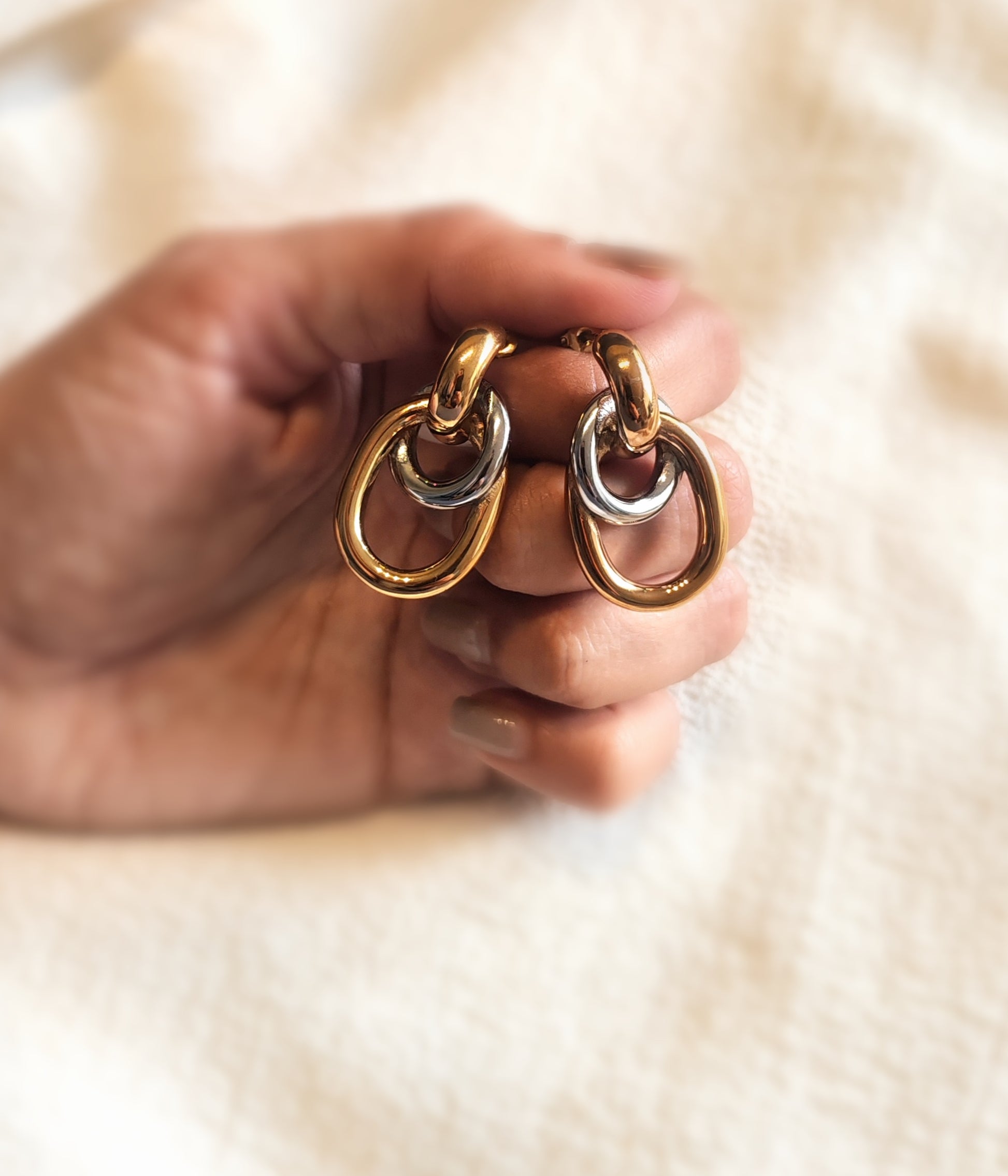 Color dorado con plateado, cierre mariposa.